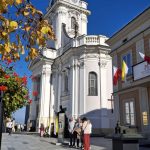Następnie przeszliśmy spacerem przez rynek, do Domu Rodzinnego J.P. II w którym od 1984 r mieści się Muzeum. Jest to pierwsza na świecie, multimedialna narracyjna wystawa będąca opowieścią o Karolu Wojtyle. Mieści się w kamienicy z 1870 r. w której od 1919 r. zamieszkali rodzice Karola Wojtyły a rok później urodził się on sam. Obecną formę ekspozycji, muzeum uzyskało dopiero w 2014 r. Kolejne etapy życia Karola Wojtyły przedstawiono w 16-tu (zlokalizowanych na 4-rech kondygnacjach) strefach wystawowych. Muzeum warte odwiedzenia; ciekawe dokumenty archiwalne i atrakcyjna forma przekazu. Dodatkową atrakcją (w tym dniu przypadała 47 rocznica pontyfikatu J.P.II) były historyczne stroje które miały na sobie „osoby opowiadające”. Parę metrów od Muzeum, znajduje się Bazylika Ofiarowania NMP. Jest to kościół parafialny noszący tytuł Bazyliki Mniejszej, nadany przez J.P. II w 1992 r. Murowany kościół w stylu późnobarokowym wybudowano w latach 1792- 1798. Współczesnym elementem wystroju wnętrza bazyliki jest polichromia sklepień (2000-2003 r) nawiązująca do nauczania J.P.II. Na uwagę zasługuje widniejący na ścianie bazyliki a widziany z dawnego mieszkania Wojtyłów, zegar słoneczny z sentencją „czas ucieka, wieczność czeka” przypisywaną J.P.II.