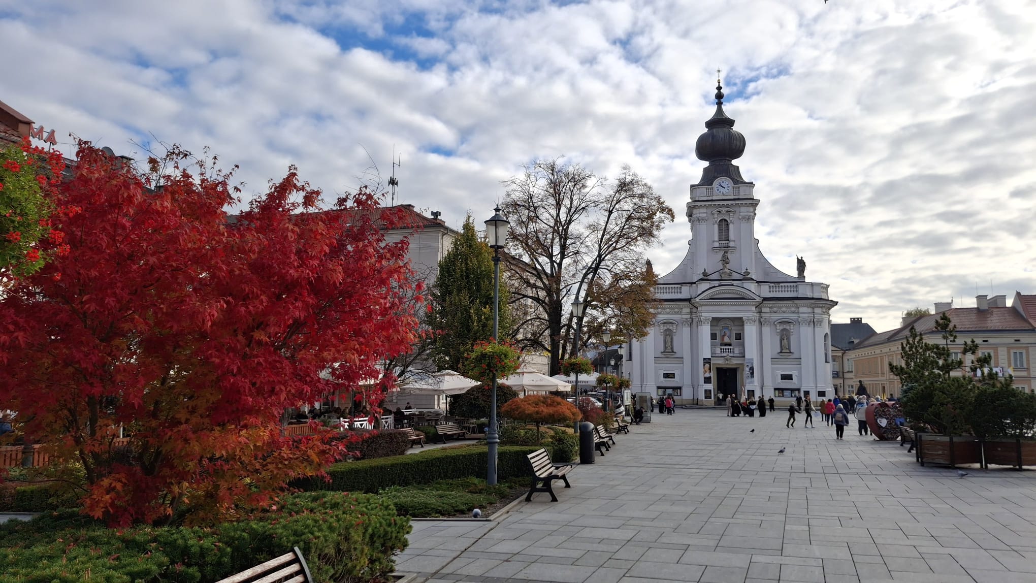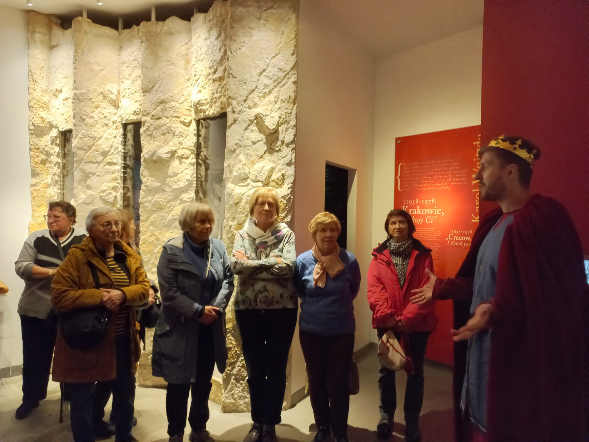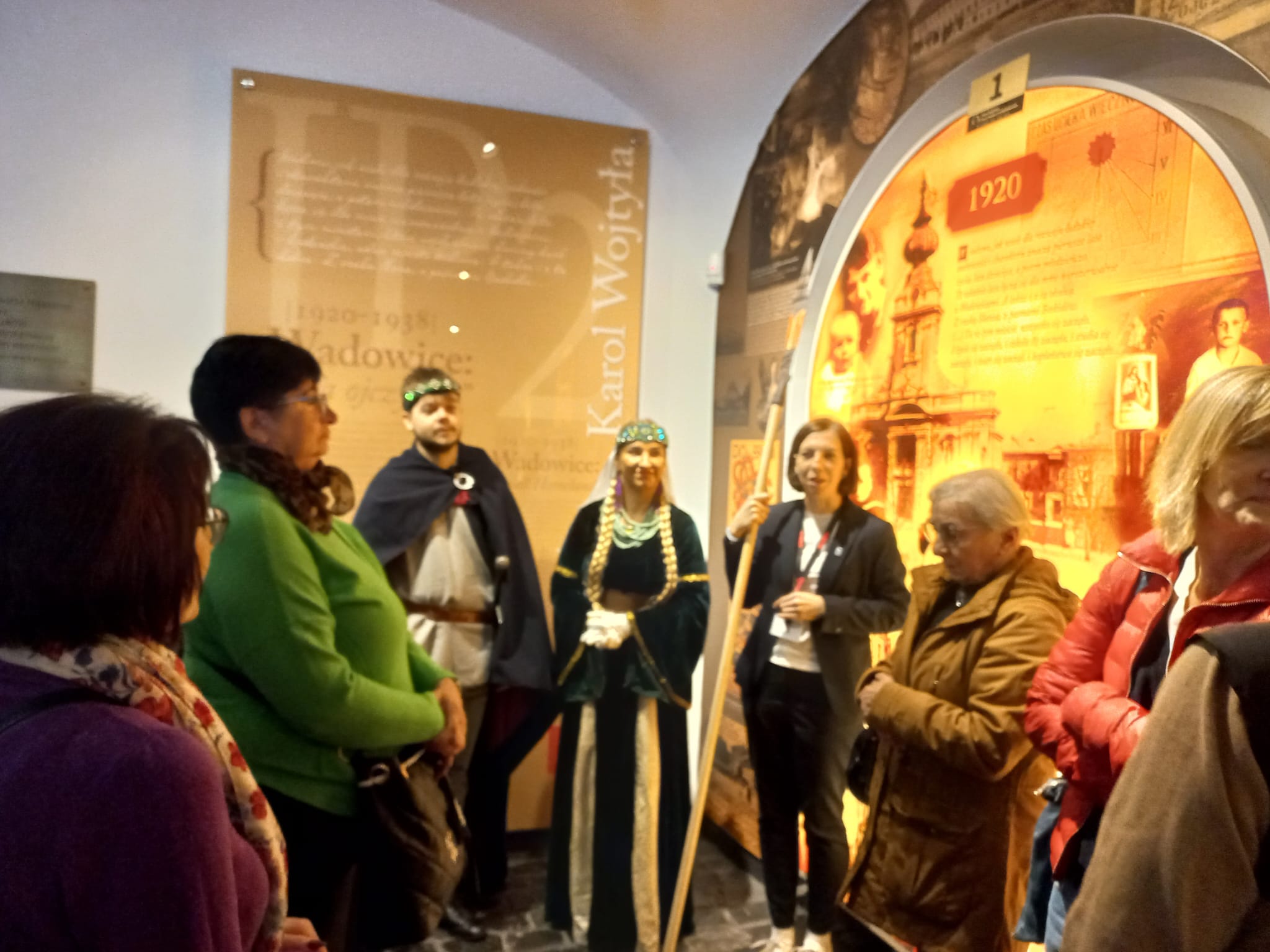 Następnie przeszliśmy spacerem przez rynek, do Domu Rodzinnego J.P. II w którym od 1984 r mieści się Muzeum. Jest to pierwsza na świecie, multimedialna narracyjna wystawa będąca opowieścią o Karolu Wojtyle. Mieści się w kamienicy z 1870 r. w której od 1919 r. zamieszkali rodzice Karola Wojtyły a rok później urodził się on sam. Obecną formę ekspozycji, muzeum uzyskało dopiero w 2014 r. Kolejne etapy życia Karola Wojtyły przedstawiono w 16-tu (zlokalizowanych na 4-rech kondygnacjach) strefach wystawowych. Muzeum warte odwiedzenia; ciekawe dokumenty archiwalne i atrakcyjna forma przekazu. Dodatkową atrakcją (w tym dniu przypadała 47 rocznica pontyfikatu J.P.II) były historyczne stroje które miały na sobie „osoby opowiadające”. Parę metrów od Muzeum, znajduje się Bazylika Ofiarowania NMP. Jest to kościół parafialny noszący tytuł Bazyliki Mniejszej, nadany przez J.P. II w 1992 r. Murowany kościół w stylu późnobarokowym wybudowano w latach 1792- 1798. Współczesnym elementem wystroju wnętrza bazyliki jest polichromia sklepień (2000-2003 r) nawiązująca do nauczania J.P.II. Na uwagę zasługuje widniejący na ścianie bazyliki a widziany z dawnego mieszkania Wojtyłów, zegar słoneczny z sentencją „czas ucieka, wieczność czeka” przypisywaną J.P.II.