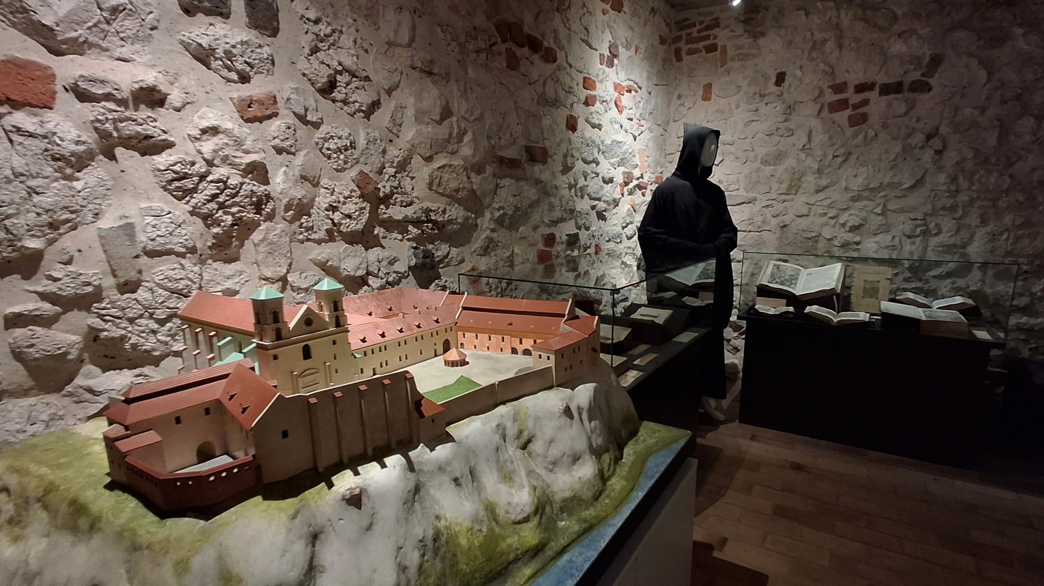 Na terenie dziedzińca klasztornego znajduje się księgarnia oraz sklep z wyrobami  pod nazwą „produkty benedyktyńskie” (piwo, wino, oleje, zioła, słodycze i inne.) Uwagę zwraca wyeksponowana lokalizacja klasztoru (na wzgórzu w zakolu Wisły), gwarantująca bajeczny widok, szczególnie w barwach jesieni i promieniach słońca.
