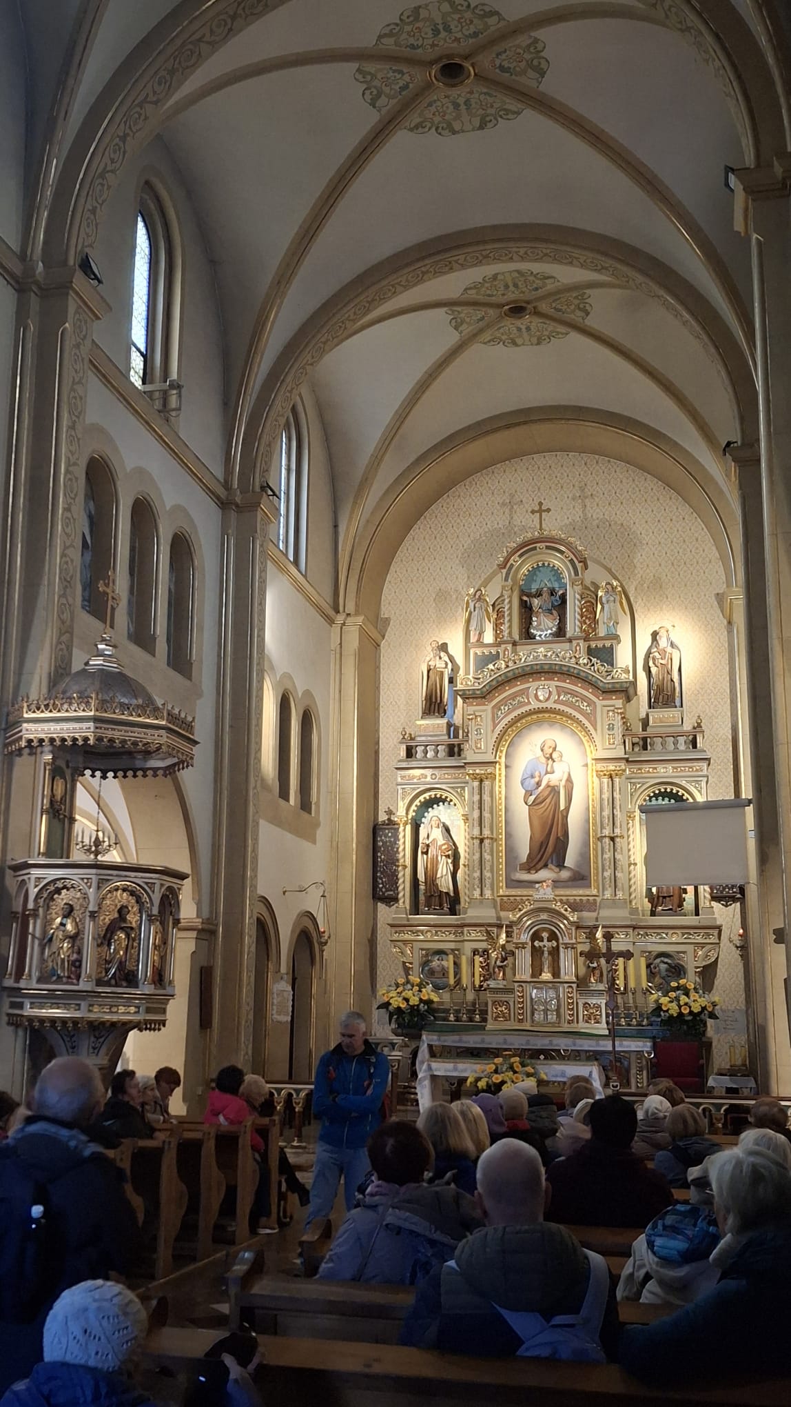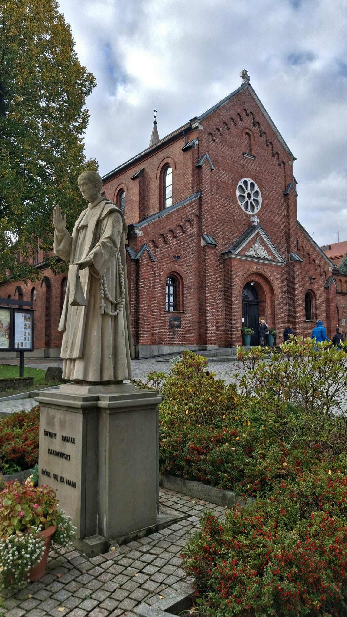 Zaczęliśmy od Wadowic-miejsca urodzin, dzieciństwa i lat szkolnych Karola Wojtyły. Pierwszym obiektem który odwiedziliśmy był Klasztor Karmelitów Bosych wybudowany w latach 1897-1899. Zlokalizowany w sąsiedztwie Kościół Karmelitów Bosych „Na górce” jest miejscem kultu św. Józefa, od wieków  czczonego w zakonie karmelitański. Od 2004 r. kiedy obraz św. Józefa w ołtarzu głównym kościoła przyozdobiony został szczególnym wotum – papieskim pierścieniem Rybaka Sługi Bożego Ojca Św. J.P. II – nosi miano Sanktuarium. Po opuszczeniu terenu Klasztoru, podeszliśmy pod I Liceum, szkoły gdzie objawił się talent i pisarski i aktorski Karola Wojtyły. Był uczniem wybitnym. Przy szkole umieszczono ławeczkę z „postacią” młodego Karola i napisem: „tu się wszystko zaczęło”.