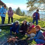 Taki dzień jak w czwartek 23-go zdarza się oczywiście….ale ciepło, słońce, piękna trasa, ognisko, pieczenie kiełbasy, 14-ścioro uczestników, 15 km w nogach – to wszystko się nam zadziało !!! I do tego pod butami szeleszczące liście a nad głowami feeria jesiennych kolorów mieniąca się w promieniach słońca. Bajka. Żeby jednak nie było tak cudnie, na górze bardzo wiało, był nawet problem z rozpaleniem ogniska.