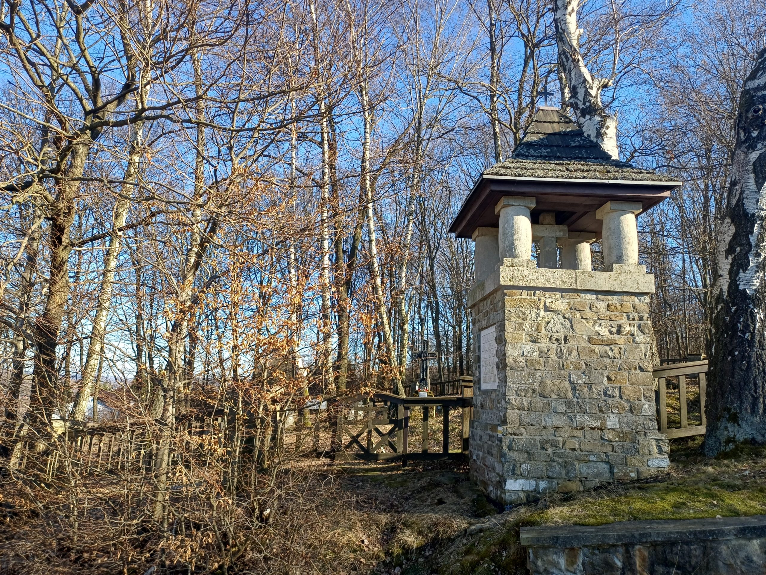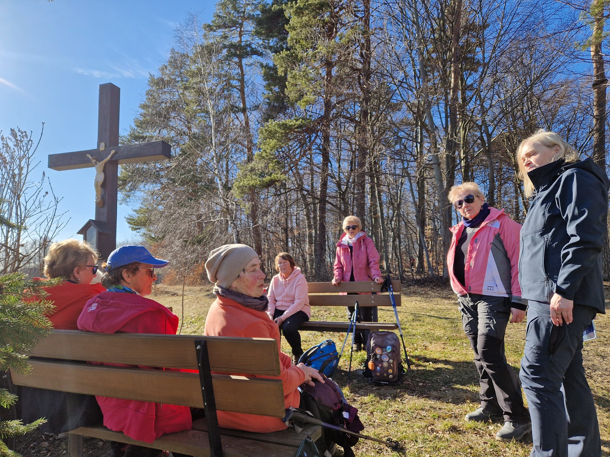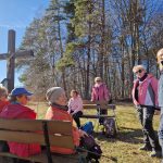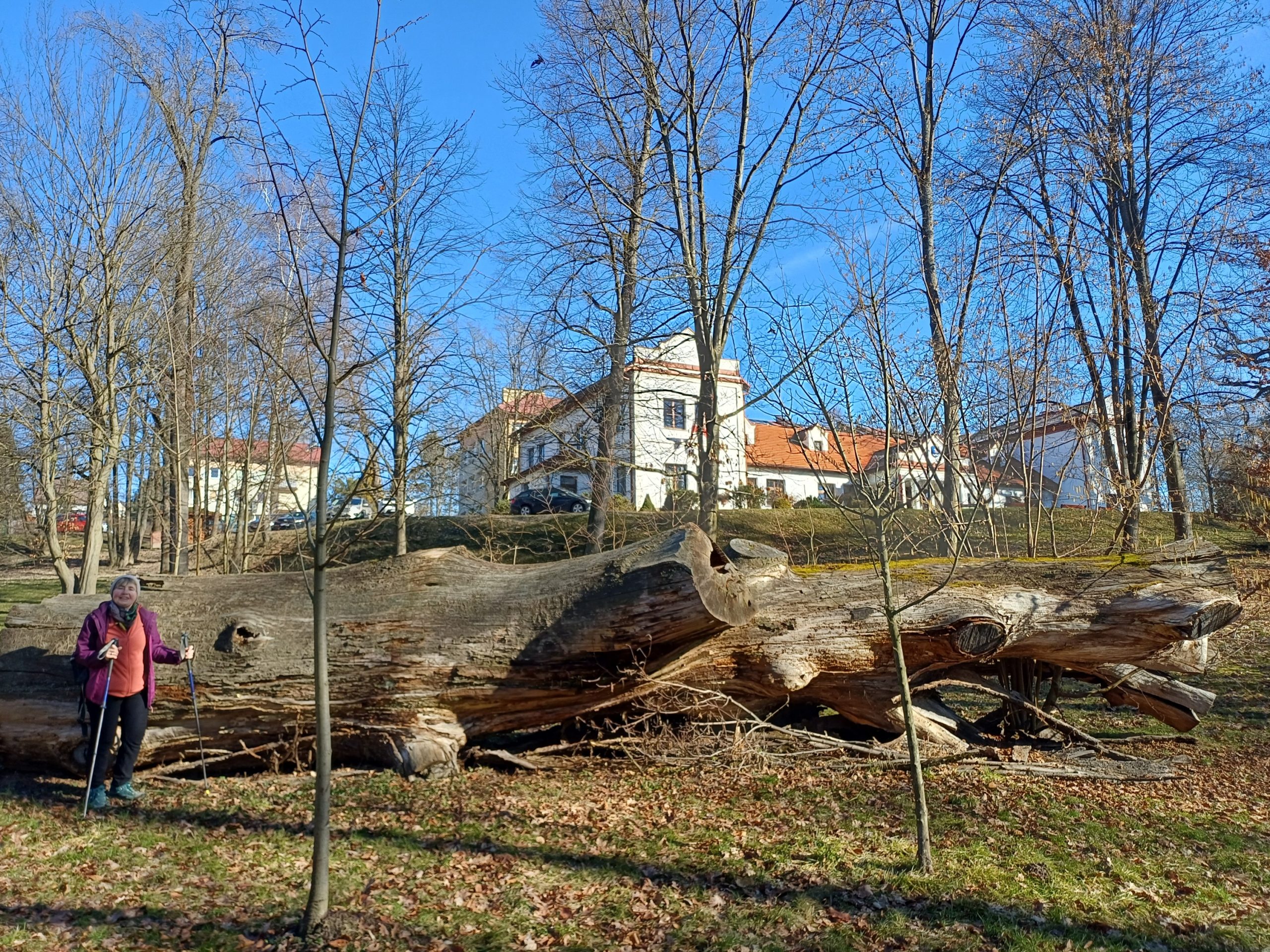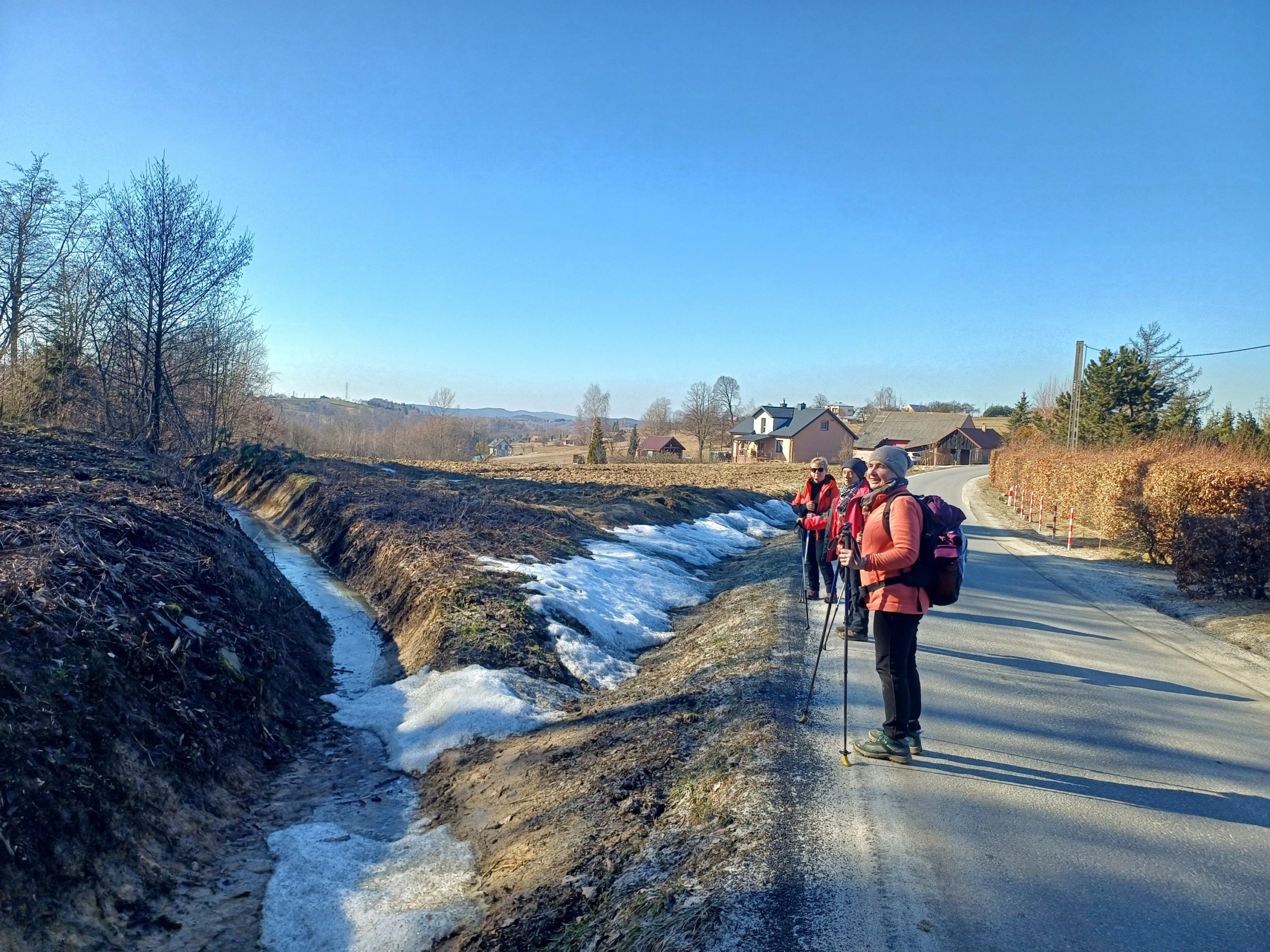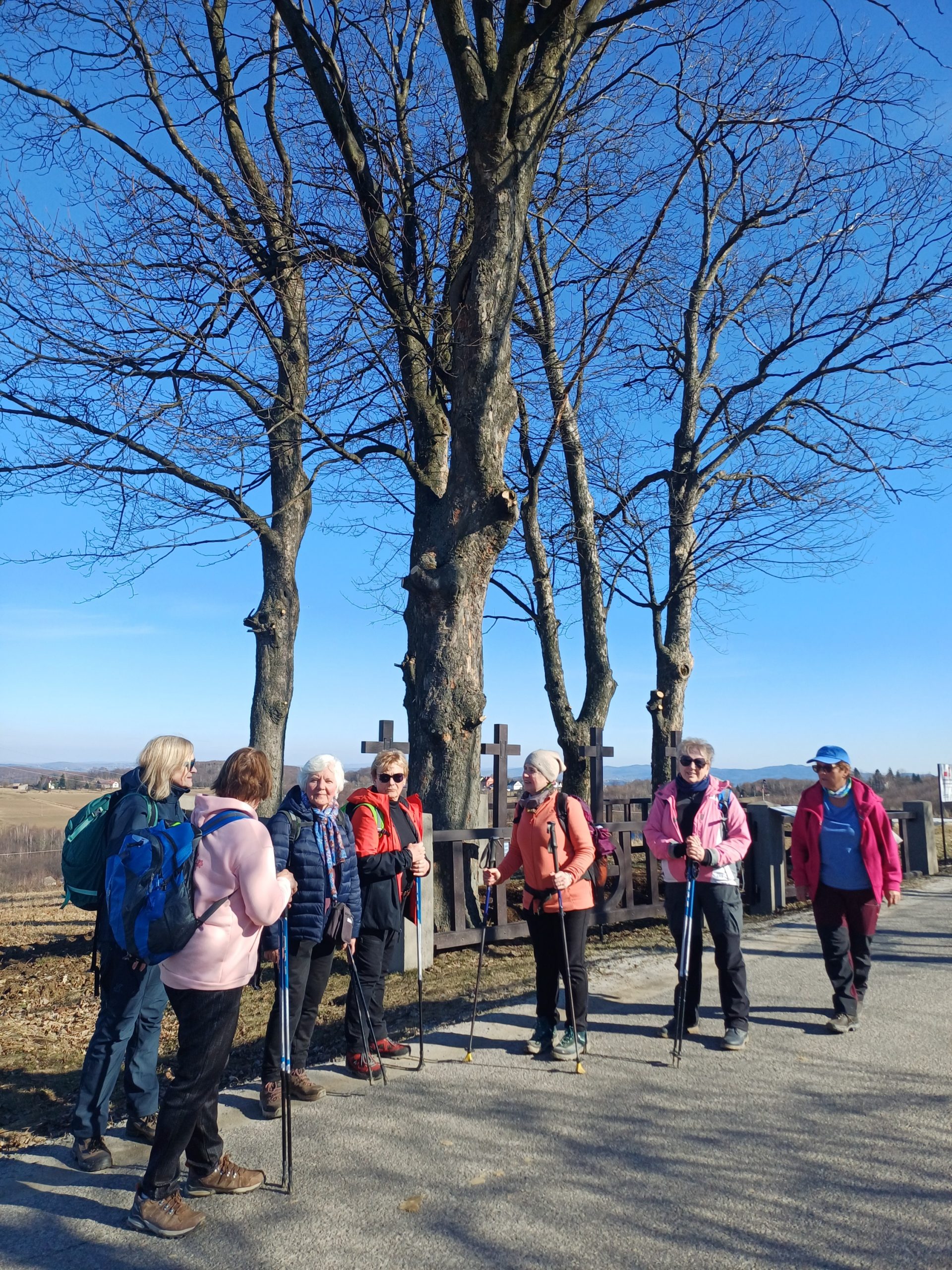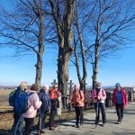 Wędrówkę zaczynamy w Gromniku, przechodzimy przez park dworski, mijamy dwór z połowy XIX wieku, a po lewej stronie mamy drewniany kościół św. Marcina z XV/XVI wieku z kamienną dzwonnicą. Podchodzimy na Babią Górę, po drodze mijamy cmentarze z okresu I wojny św. i wreszcie wchodzimy w las. Wąwozem stromo pod górę, uważając na błoto, powoli osiągamy Pasmo Wału. Jest to najwyższe widoczne z Tarnowa wypiętrzenie Pogórza Rożnowskiego, skąd rozciągają się wspaniałe widoki. Siadamy na ławkach i wygrzewamy się w wiosennym słońcu podziwiając rozległą panoramę z widocznym stokiem narciarskim „Jurasówka”. Na lewo od grzbietu położone są kamieniołomy, w których znaleziono unikalne skamieliny pni drzew. Jest tak pięknie, że ociągamy się z wyjściem w dalszą drogę. Z Wału najpierw drogą, a potem lasem /kolejny cmentarz / dochodzimy do Pleśnej, gdzie po przejściu 15 kilometrów w 10 -cio osobowym składzie kończymy wycieczkę.