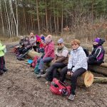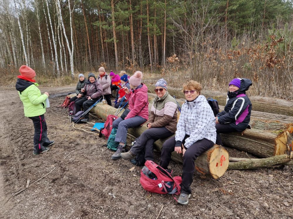 I znowu „udało się ” nam pobłądzić na tym samym odcinku trasy z Czarnej do Jodłówki. Po przekroczeniu torów kolejowych skręciliśmy na drogę prowadzącą do lasu, co prawda trochę dalej niż należało to zrobić, ale potem to już całkiem pomyliły się nam kierunki. Każdy miał inną wersję marszu, wybraliśmy drogę prowadzącą ścieżką leśną, która wkrótce się skończyła i dalej to już była całkowita improwizacja. Szliśmy przez bardzo zarośnięty las, przez karczowiska, nierówny teren, było prawie jak w puszczy, dziki teren bez ingerencji leśników, żadnych ścieżek, przecinek leśnych, zupełnie nic. Trochę nas to zmęczyło, więc należał się odpoczynek, powalone duże drzewa posłużyły nam za miejsca do siedzenia.  Ale miało to też swój urok, dawno tak nie biesiadowaliśmy, i jak zwykle było co świętować – Walentynki i zaległe imieniny Marysi.  Dobrze, że pogoda była łaskawa i przyświeciło nawet słoneczko. Wkrótce wróciliśmy na właściwą drogę zataczając niemałe kółko, chociaż w pewnym momencie byliśmy tak blisko naszego celu. Dalej to już prosty, prawie 8-mio kilometrowy odcinek szerokiej utwardzonej drogi leśnej. W lesie trwa zimowa wycinka drzew, a przy drodze leżały poukładane metrówki drewna gotowe do transportu. Pracujący leśnicy czyścili też las z mniejszych drzew, krzaków, zima to odpowiednia  pora na porządki w lesie. Niezmordowana 14 -osobowa grupa Łazików przemaszerowała 15 kilometrów / co najmniej 3 dodatkowe za błądzenie /. Może w końcu zapamiętamy tę trasę bez błądzenia, bo to bardzo fajna, prosta trasa i blisko Tarnowa. Czas spędzony na świeżym powietrzu w zaprzyjaźnionym gronie daje dużo zadowolenia, radości i zastrzyk energii  na kolejny tydzień.