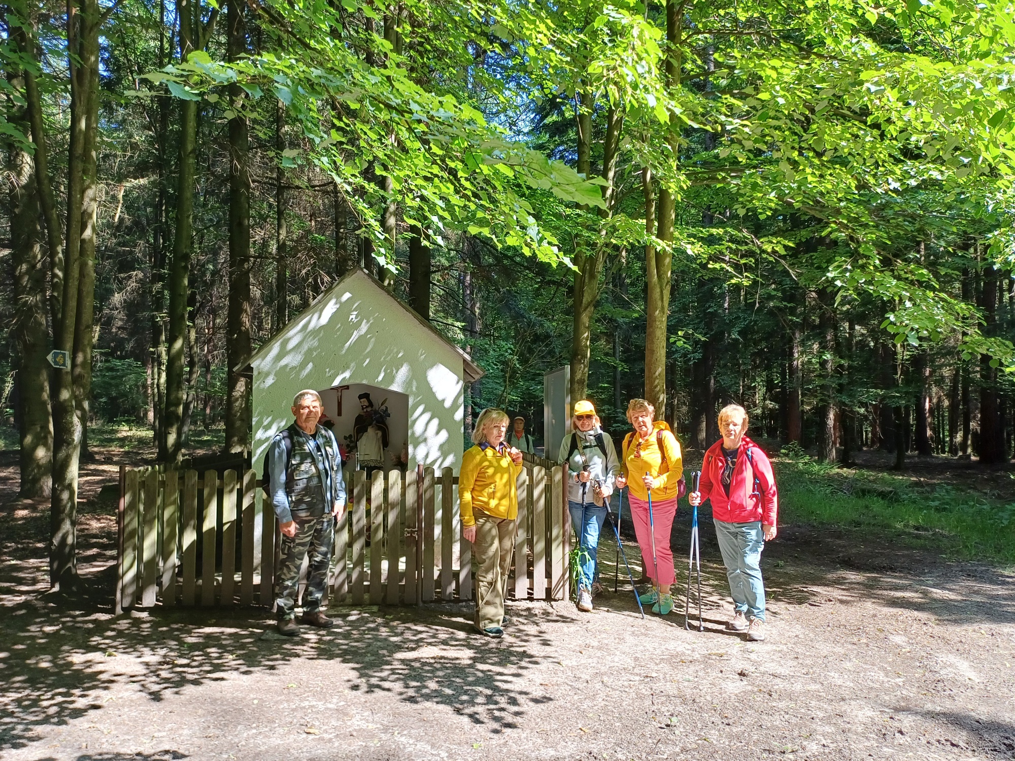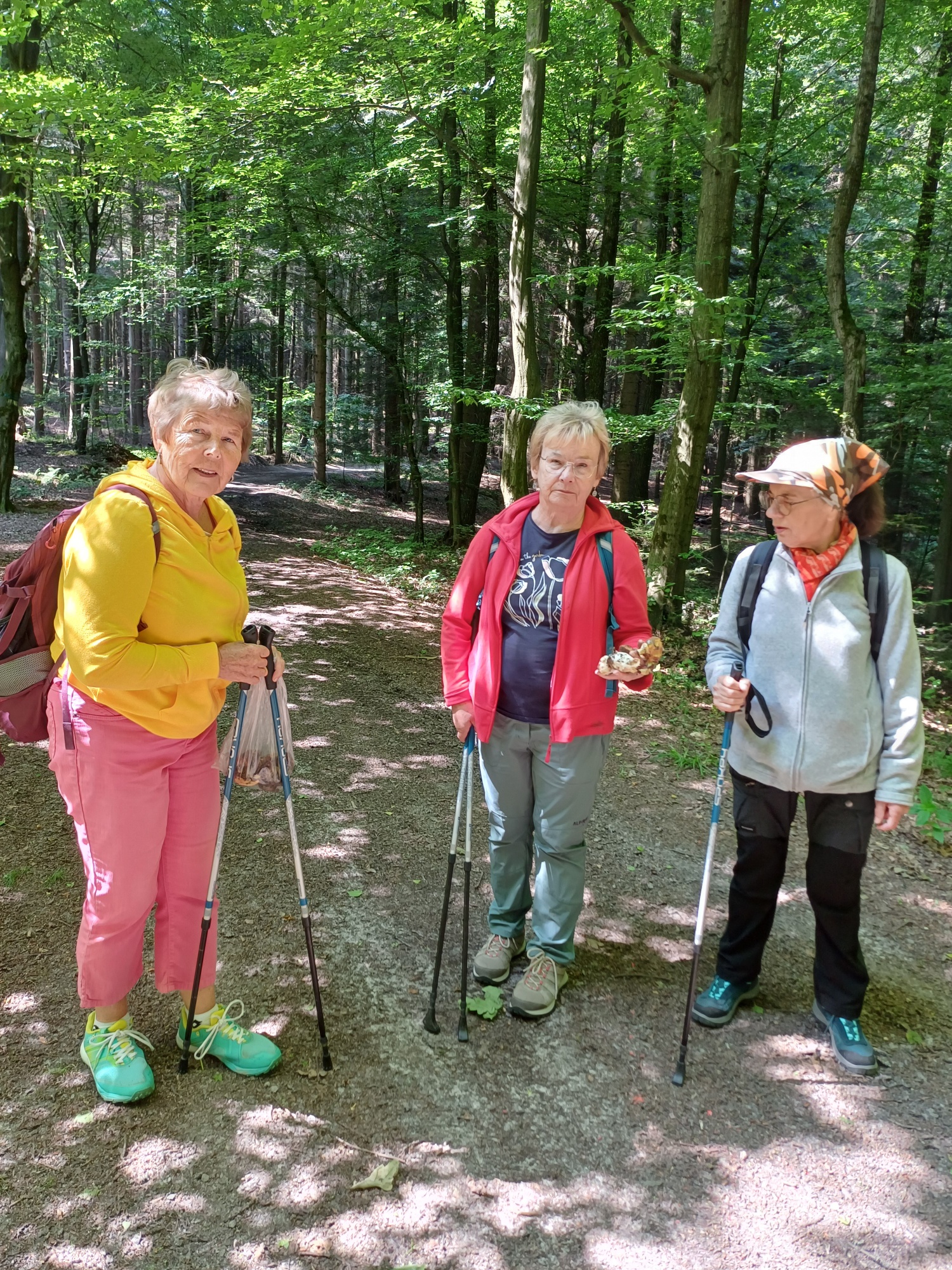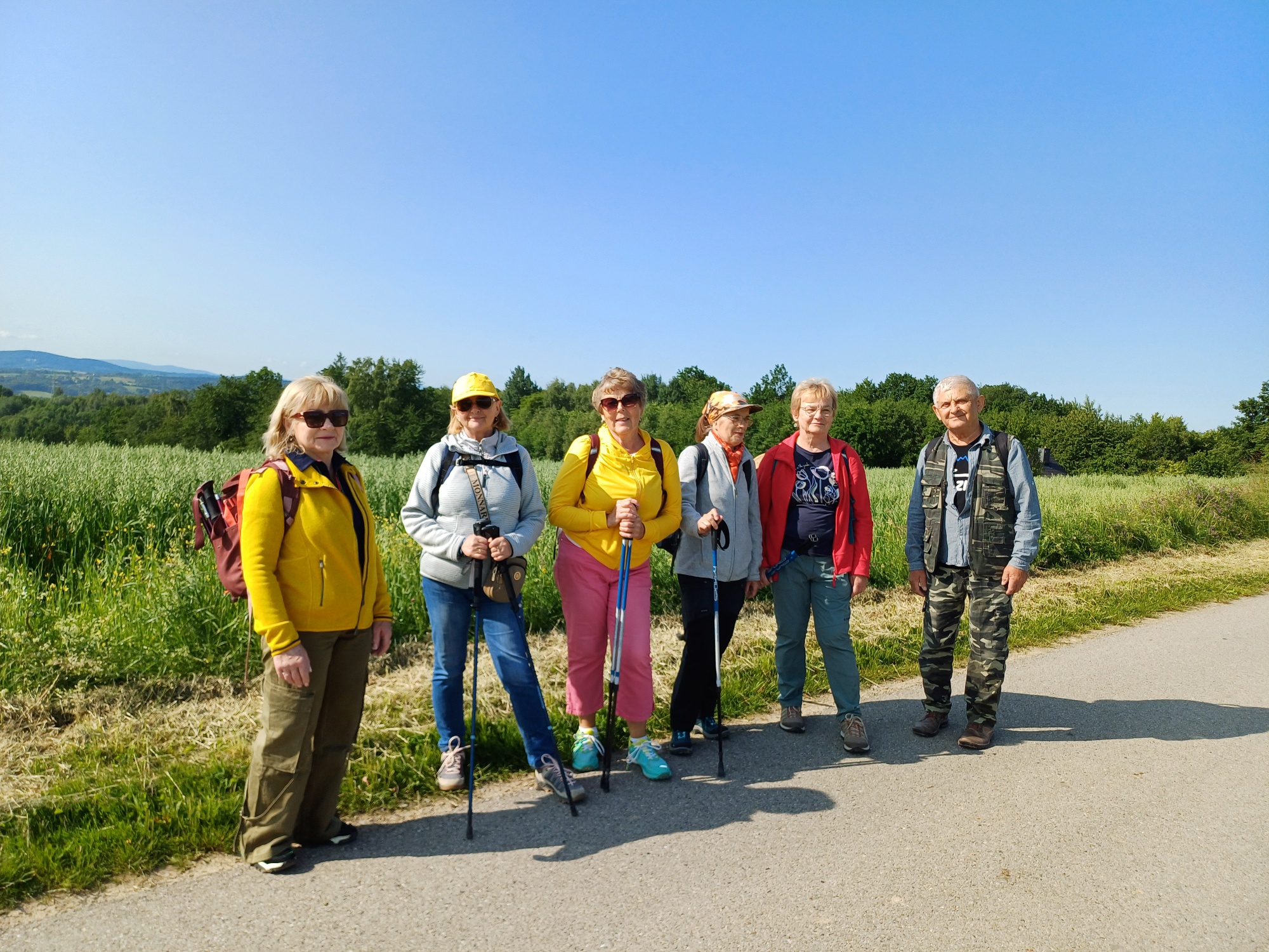 Pogoda jak zwykle dopisała, za to grupa przyszła w okrojonym składzie, 7 osób, czyżby zaczęły się już wakacyjne wyjazdy. Poszliśmy starym, utartym szlakiem z Łękawki do Trzemesnej, z krótkim odpoczynkiem przy kapliczce św. Jana. Ponieważ trasa prowadziła przez lasy, więc nasze oczy skupiły się na wypatrywaniu pierwszych grzybów, oczywiście były, nawet borowiki. Taki spacer przez lasy i ścieżką między polami to uczta dla wszystkich naszych zmysłów. Mamy okazję podziwiać zmiany w przyrodzie, ich dynamikę, soczysta bujna zieleń drzew i krzewów, kwitnące łąki – niektóre już skoszone, a zapach siana unoszący się w powietrzu – istna rozkosz, dojrzewający rzepak, szybko rosnące zboża i kwitnący czarny bez. Dłuższy „popas” na polance w Trzemesnej i ruszamy dalej w drogę, też lasem , w stronę Szynwałdu. Super pogoda, super trasa – 13 kilometrów i oczywiście super towarzystwo.