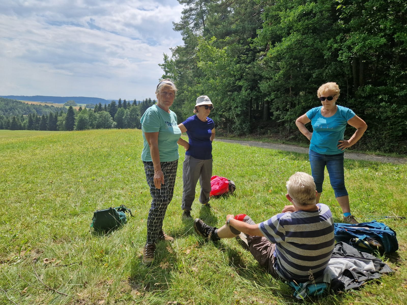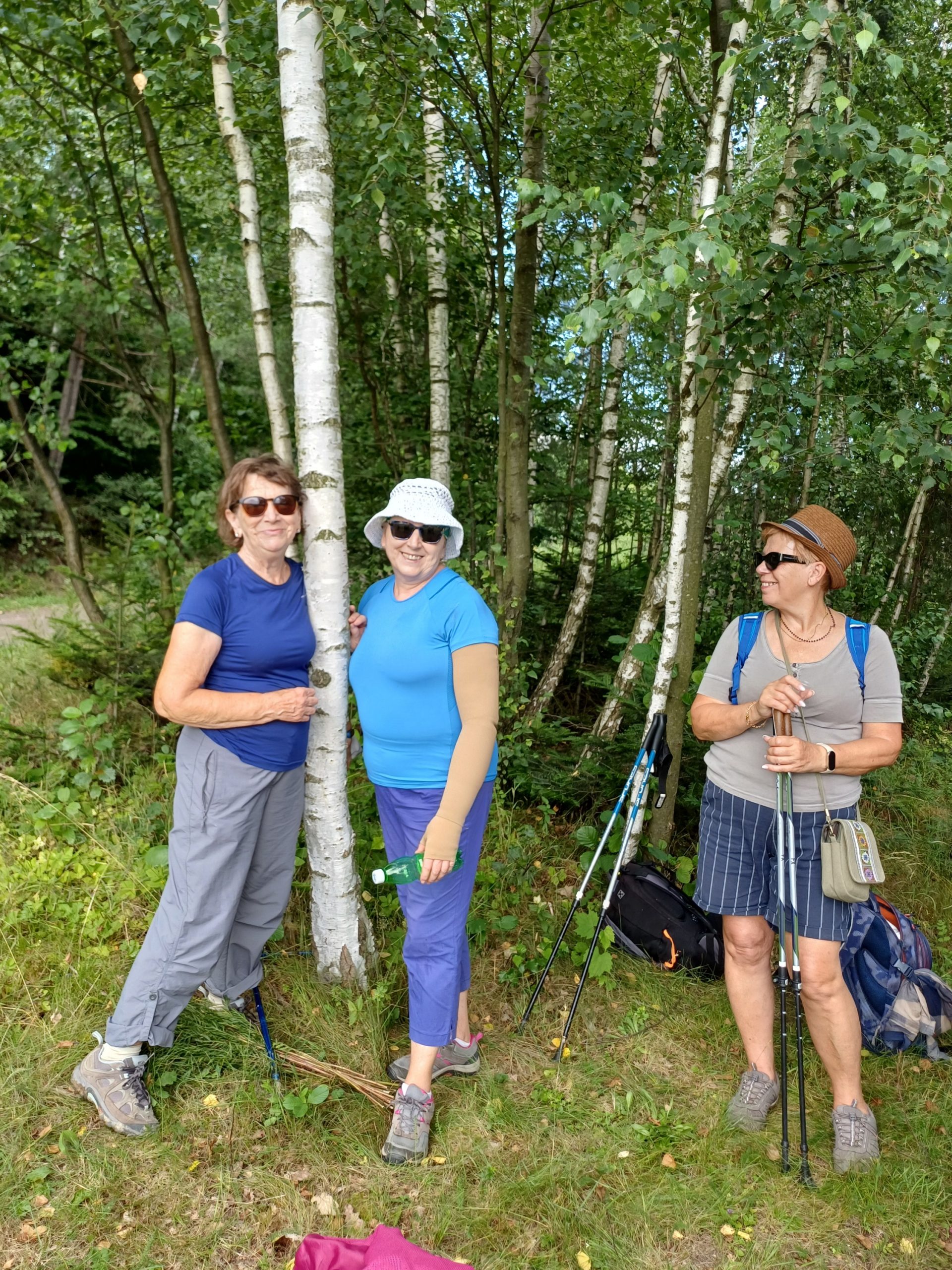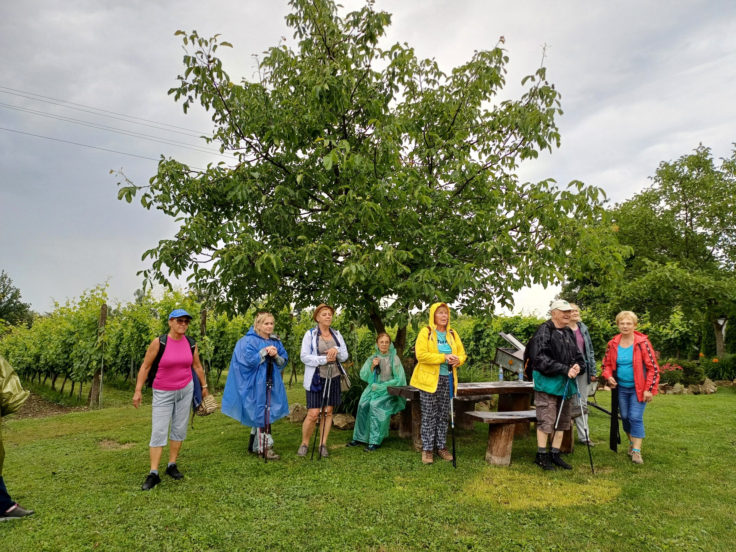 Pogoda spłatała nam małego figla, powitał nas rano mały, drobny deszczyk, który z przerwami towarzyszył nam do Policht. Grupa w liczbie 13 osób była przygotowana i na taką sytuację, więc nie zrezygnowaliśmy z zaplanowanej wycieczki, tylko ruszyliśmy na trasę. Po drodze zatrzymaliśmy się przy winnicy „Kuźnia” w miejscu przygotowanym na spotkania – fajne miejsce. Po przybyciu do Policht byliśmy mile zaskoczeni – po latach zastoju wreszcie Ośrodek Edukacji Ekologicznej tętni życiem. Rozlokowany jest tu obóz harcerski pod namiotami – grupa 46 harcerek i harcerzy ze Skawiny. Przypomniały nam się nasze wyjazdy na podobne obozy – jak to dawno było. Za zgodą komendanta obozu zatrzymaliśmy się pod wiatą na dłuższe śniadanie. Grzybów w lesie nie było wcale, za to kwitnie już wierzbówka i czerwieni się jarzębina. W drogę powrotną ruszyliśmy w kierunku Jastrzębi, a ponieważ mieliśmy dużo czasu do odjazdu busa, więc po drodze były przystanki na polanach z pięknymi widokami. Słońce na dobre zagościło na niebie, zrobiło się bardzo ciepło, więc z przyjemnością siedzieliśmy na trawie snując plany na następne wypady. Po przyjściu na przystanek okazało się, że jeszcze mamy sporo czasu, więc poszliśmy dalej, zwiedzając Jastrzębię, by zakończyć wędrówkę po 17 kilometrach.