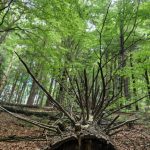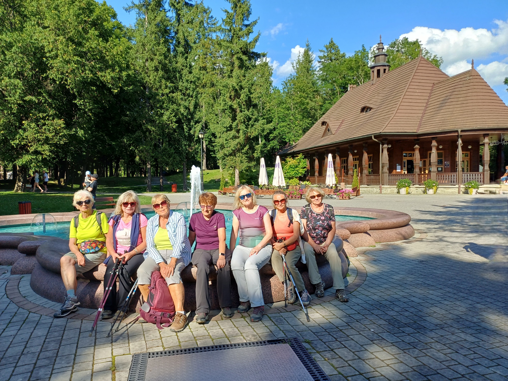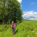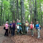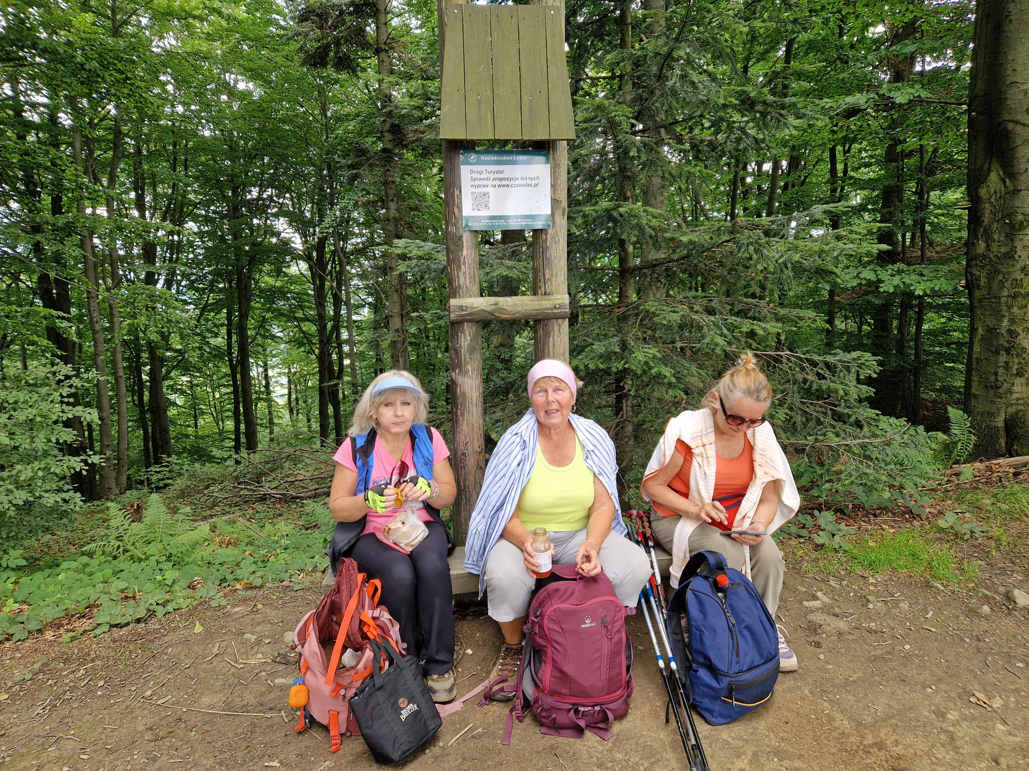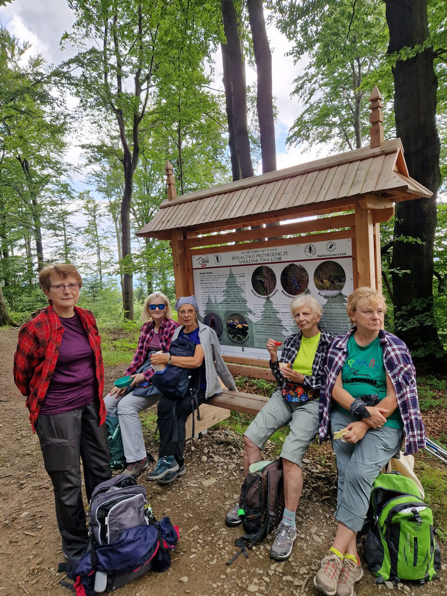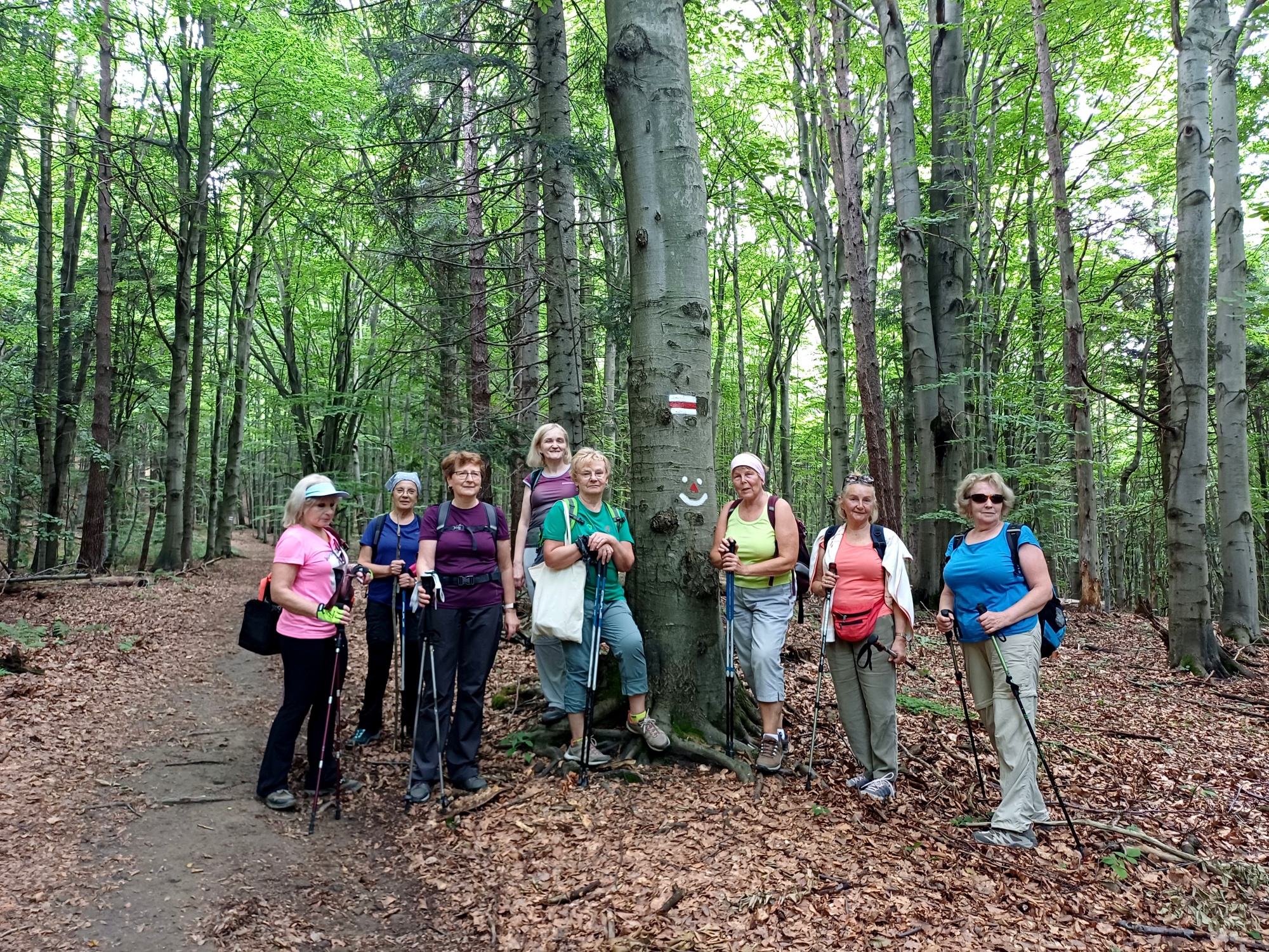 Beskid Niski – celem naszej wędrówki jest Kozie Żebro, to charakterystyczny długi grzbiet rozdzielający dolinę Ropy od doliny Regietówki. Zaczynamy w Hańczowej, gdzie przechodzimy przez malowniczy mostek nad Ropą, a potem wąską ścieżką pniemy się w górę potoku Markowiec i kilkukrotnie go przekraczamy skacząc po kamieniach / oj, niektóre kamyki były ruchome /. Po przeprawie w górę potoku idziemy szeroką leśną drogą, a następnie wchodzimy w piękny bukowy las i tu przyszedł czas, aby się trochę powspinać. Miejscami było stromo, ale otuchy dodał nam radosny buk z uśmiechem no i grzyby – prawdziwki. Wreszcie zdobywamy szczyt Koziego Żebra / 847 m n.p.m./ i tutaj mamy zaplanowany dłuższy odpoczynek. Są ławeczki, kamienny kopiec, tablica przyrodnicza i wspaniałe widoki na Tatry. Schodzimy w dół kamienistym zboczem przez Dolinę Łopacińskiego do Wysowej. Spacer po uzdrowisku, pijalnia wód mineralnych, fontanna i obiad w karczmie „Gościnna Chata”, gdzie smakowaliśmy regionalne potrawy łemkowskie. Pięknie spędzony wakacyjny czas w nielicznym dziś gronie / 9 osób / przy wspaniałej pogodzie i niezbyt długiej trasie, bo tylko 11 kilometrów, ale warto było, bo tymi szlakami jeszcze nie wędrowaliśmy.