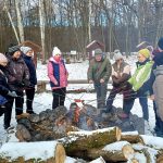 Kończymy 2025 r. spotkaniem przy ognisku na polanie biwakowej w lasach Wierzchosławickich, podobnie jak ten rok zaczynaliśmy. Jak zawsze było świetnie, humory dopisywały, pogoda też była łaskawa, lekki mróz i słońce, choć czasami wiał silny wiatr, no i wokół było biało, prawdziwa zima. Ogrzewaliśmy się przy zapalonym ognisku, a na rozgrzewkę był gorący żurek i pieczone kiełbaski.