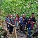 W ramach projektu MCAS grupy turystyczne Łaziki i Trampy wyjechały na wycieczkę w Beskid Niski. Trasa prowadziła przez tereny zupełnie dla nas nieznane, a jakże krajobrazowo inne, niż te w bliskiej okolicy Tarnowa. Lasy, rozległe polany i niewielkie wzniesienia. Szliśmy wzdłuż potoku, przez zarośnięte wysoką trawą szlaki, przez błoto, jak i po pięknych górskich łąkach, a wyzwaniem było przejście przez strumyk. Trasa była łatwa, bez większych podejść, tak że wszyscy dali radę i szliśmy zwartą grupą. Beskid Niski to tereny głównie zamieszkiwane dawniej przez ludność łemkowską, stąd można jeszcze spotkać pozostałości ich bytności tutaj. Na polach rosną jeszcze drzewa owocowe, można znaleźć resztki murów ich domów, a nawet zachowane całe chyże, drewniane cerkwie, cmentarze i wiele przydrożnych krzyży / najstarszy z 1876r./ czy kapliczek. Obecne gospodarstwa oraz wiele pensjonatów czy domków letniskowych są już nowe. Zatrzymaliśmy się w klimatycznym schronisku bacówka PTTK /w remoncie/ w Bartnem, , aby posmakować tradycyjnych łemkowskich pierogów, na które czekaliśmy dość długo, ale warto było. Bartne to dawna łemkowska wieś łańcuchowa / domy rozmieszczone wzdłuż potoku lub drogi/ , można tu poczuć atmosferę „końca świata”. Życie płynie tu wolno, nie ma dużego ruchu samochodów, brak internetu, cisza i spokój. No i jest tu pięknie zachowana cerkiew Św. Kosmy i Damiana z 1842r., cmentarz i druga mniejsza cerkiewka. Była to kolejna wspólna wycieczka obu grup, zadowoleni, niezbyt zmęczeni / 14 kilometrów /, pełni nowych wrażeń wracamy i do następnej wędrówki.
