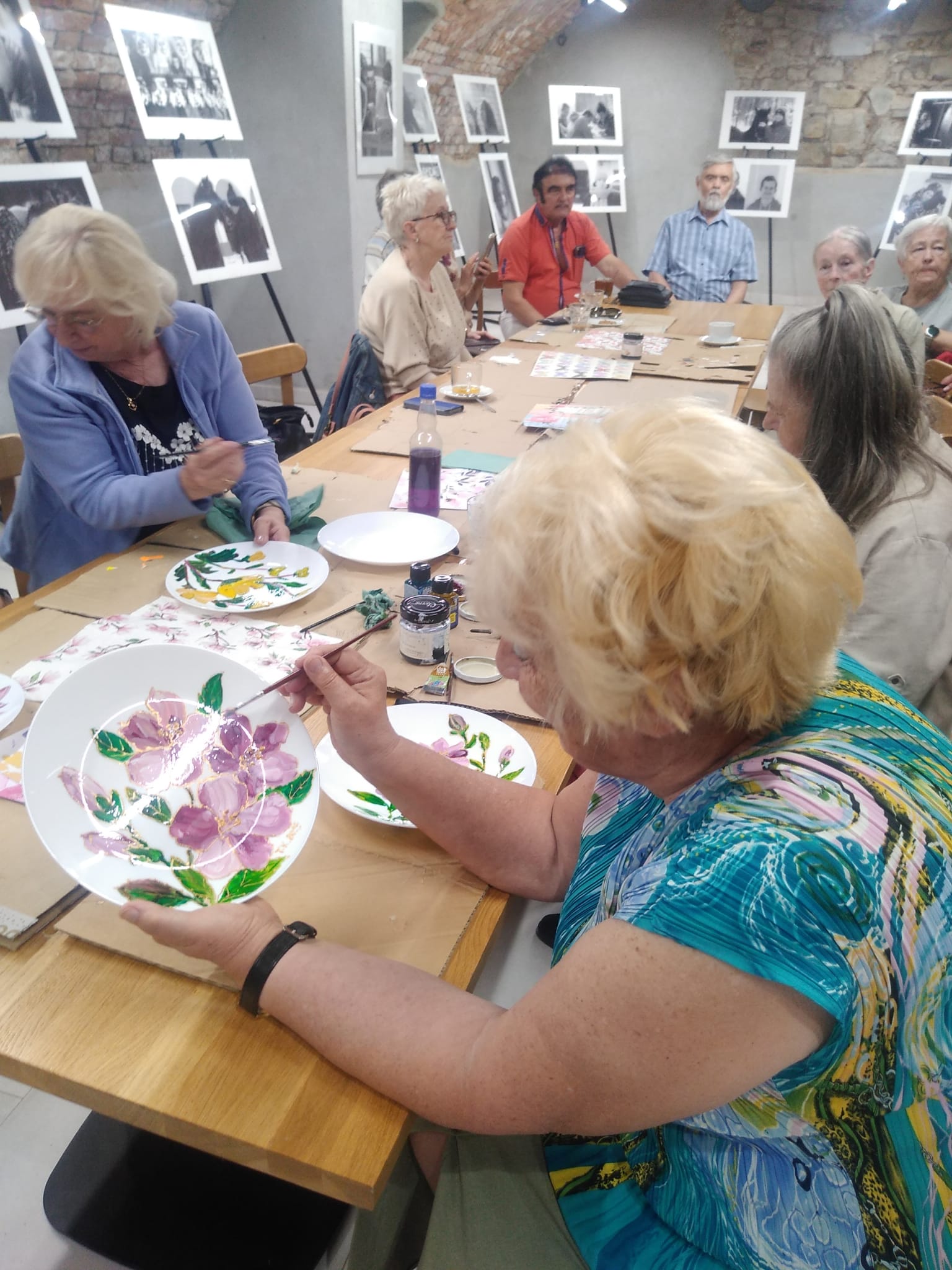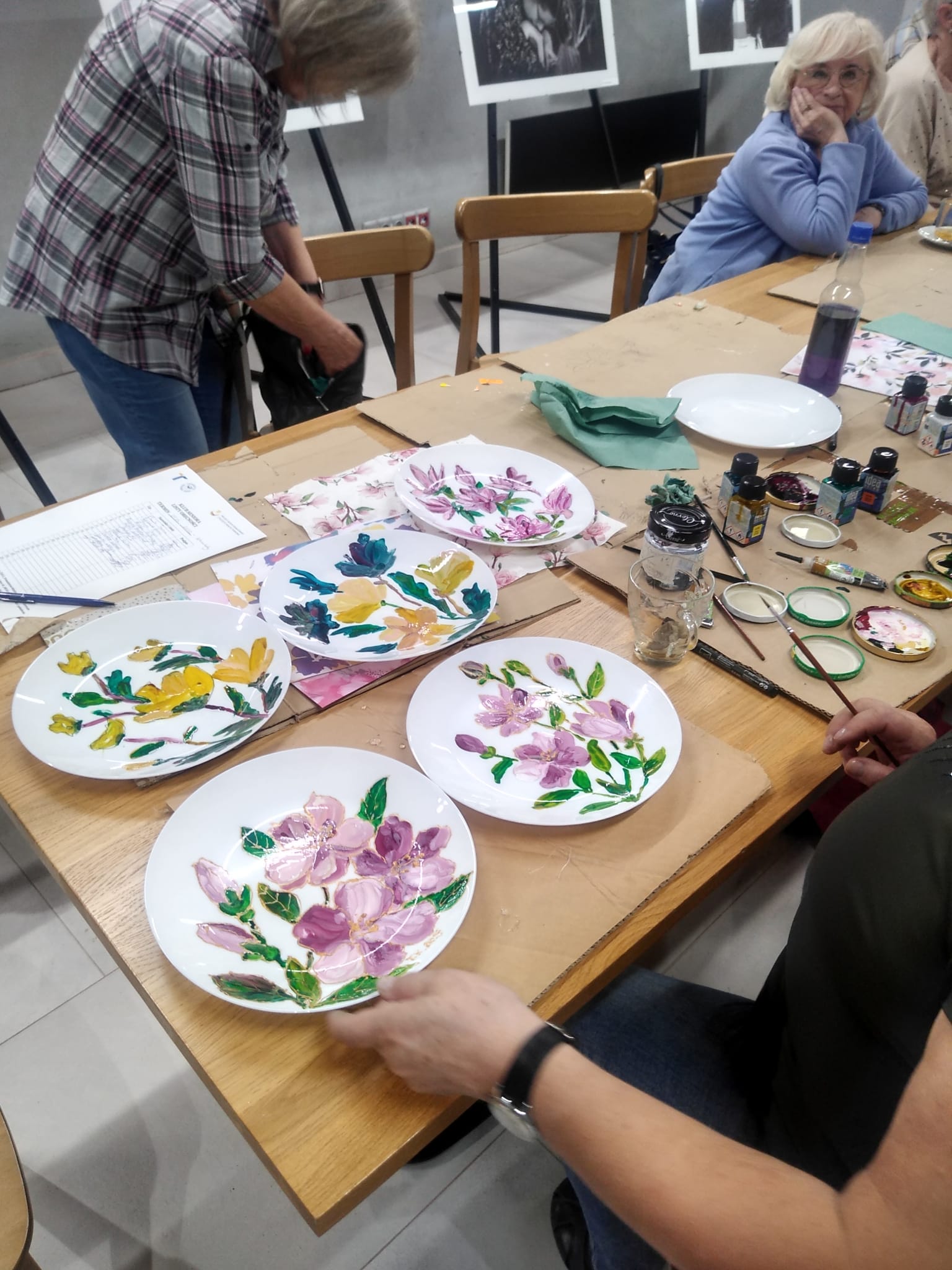 Za nami kolejne warsztaty. W dniu 24 kwietnia w naszym klubie MCAS „AKTYWNI” malowaliśmy zwykle, białe talerze w kwiatowe motywy. Jak zwykle pomocą i radą służyła nam Nasza prowadząca warsztaty Teresa Kluzik. Na następnych zajęciach prace zostaną zakończone. Jeszcze kilka pociągnięć złotą farbą i można będzie pochwalić się swoim dziełem w domu lub mieć wspaniały prezent dla znajomych.