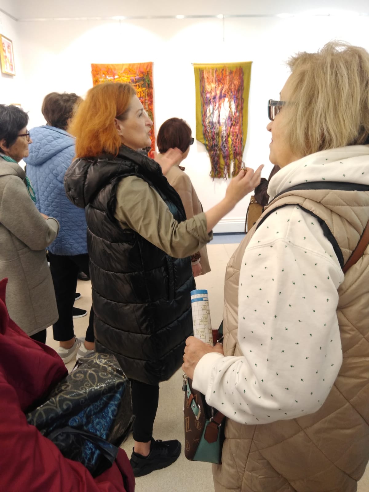 W dniu 05.05.2025 r. Seniorzy MCAS „Aktywni” spędzili czas bardzo aktywnie. Odwiedziliśmy dwie wystawy. Pierwsza wystawa po sąsiedzku w Galerii „Arteka” , która prezentowała pracę trzech artystek: Moniki Stec, Doroty Wiśniewskiej i Anny Śliwińskiej pt. „Ładnie” – wystawa sztuki włókna. Skąd pomysł na wystawę? Trzy artystki postanowiły wspólnie zademonstrować możliwości operowania włóknem. Wspólnie, ale każda na swój indywidualny sposób. Podziwialiśmy różnorodne interpretację tematu piękna i estetyki w sztuce włókna. Była też możliwość porozmawiania z artystkami.