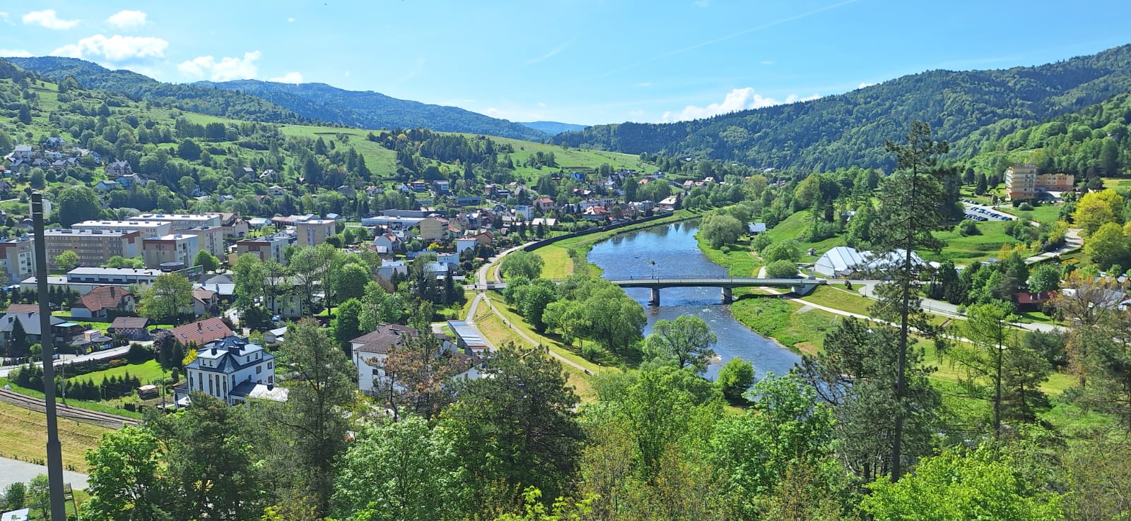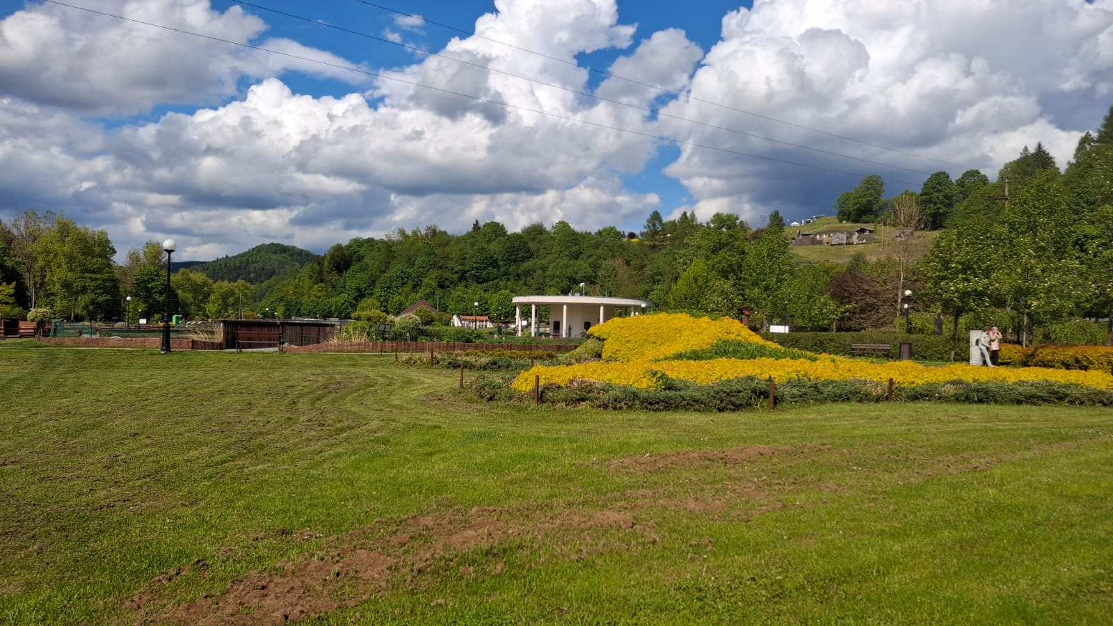 Jest to część miasta, położona na lewym brzegu Popradu w jego zakolu. Jest to wspaniałe miejsce do relaksu, spaceru, odpoczynku. Znajduje się tu m.in. Centrum Rekreacji i Sportu, tężnia, piękne fontanny, parometrowe konstrukcje z metalu i kwiatów przedstawiające zwierzęta i ptaki. Spacerując alejkami, spotykaliśmy się z innymi uczestnikami wycieczki.
