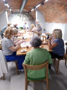 Pod czujnym okiem instruktora seniorzy krok po kroku zgłębiali podstawy decoupage – sztuki ozdabiania przedmiotów za pomocą papierowych serwetek, specjalnych lakierów i farb. Każdy z uczestników miał możliwość stworzenia własnej, unikatowej pracy, zdobiąc tą techniką kawałki gałęzi, które po odpowiednim spreparowaniu powierzchni, oklejane zostały wzorami wyciętymi z papierowych serwetek.