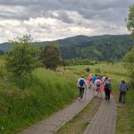 Beskid Niski ….sercu bliski. I tak było na naszej ostatniej wyprawie z Hańczowej przez Ropki do Wysowej. Marsz łagodnym szlakiem z pięknymi widokami lasu, niewielkimi wzniesieniami, z dojrzałym kolorem zieleni, błękitem nieba i radośnie świecącym słońcem. Tu czas płynie inaczej, wolno, w oddali na polanach, polach widać pracujące ciągniki, jeszcze żniwa. Po drodze mijamy stare, ale zadbane łemkowskie kapliczki i napisy w ich języku. To teren zamieszkiwany dawniej przez ludność łemkowską, stąd też liczne drewniane małe cerkiewki. W Wysowej czas na odpoczynek i słynne placki ziemniaczane w ulubionej restauracji. Za cerkwią / w remoncie/ skręcamy na szlak i idziemy na św. Górę Jawor, delikatnie pod górkę i zatrzymujemy się przy studni i kaplicy, miejscu pielgrzymek i spotkań ekumenicznych. W budowie jest druga kapliczka i studnia, a wkoło na wzgórzu stoją prawosławne krzyże pielgrzymkowe / jak na Grabarce/. Wracamy inną drogą, dochodzimy na punkt widokowy i cieszymy nasze zmysły. Zniżające się ku zachodowi słońce, polany pełne swojego kolorytu, zbocza porośnięte lasami i w oddali większe wzniesienia. Takie widoki na długo pozostaną w pamięci. Leśną ścieżką wracamy do Wysowej, spacer przez park zdrojowy, pijalnia, tężnia i lody. Spotykamy się z trzema osobami, które nie poszły na Jawor, a też miło spędziły czas korzystając z uroków uzdrowiska i odwiedzając ośrodek domków wczasowych ” Zacisze”. Piękna, bez pośpiechu, całodniowa wycieczka, dająca wiele radości i przy cudownej pogodzie w gronie 12-tu Łazików, tak że nawet tych 18-tu kilometrów tak się w nogach nie czuło. Tekst p. Urszula Marzec