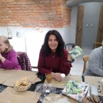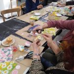 Dzisiaj wykorzystaliśmy do pracy materiały, które pozostały z ubiegłego roku. Część klubowicze malowała ozdobne talerze, pozostali malowali witraże. Po długiej przerwie w spotkaniach klubowych wszyscy z zapałem zabrali się do pracy.
