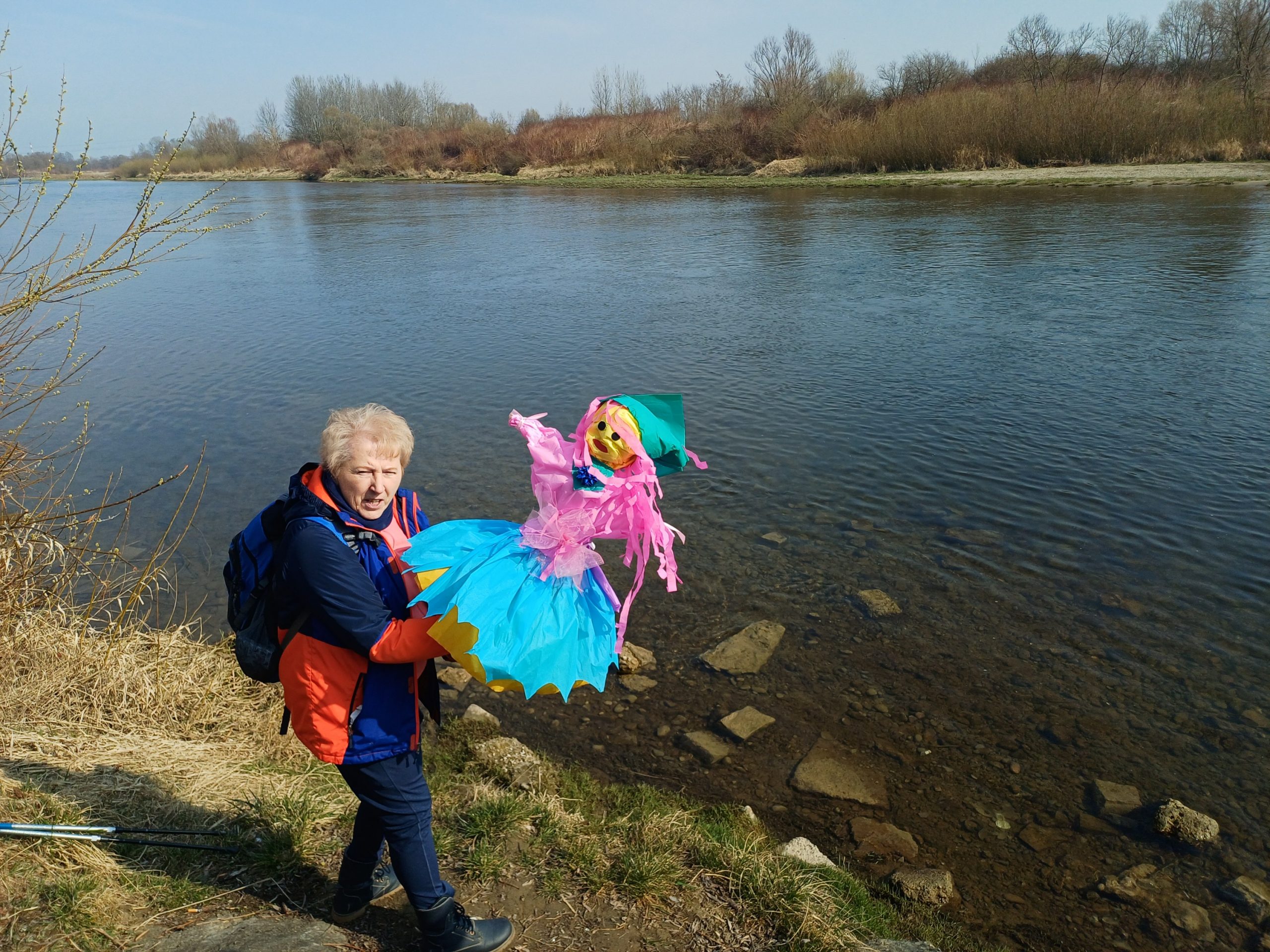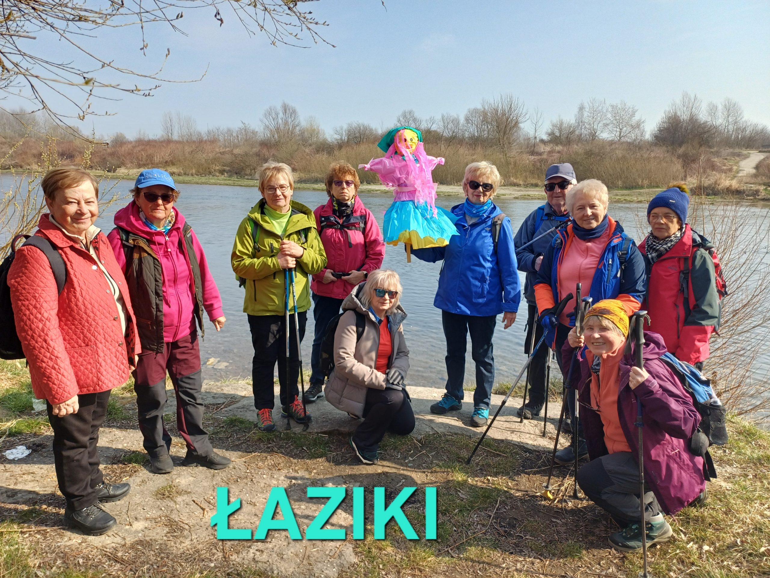 Tradycyjnie, jak co roku, Łaziki powitały wiosnę. Spacerkiem wałami wzdłuż Dunajca z Łęki Siedleckiej z piękną Panną Marzanną / autorstwa Eli B./ zeszliśmy nad brzeg rzeki i tam po wypowiedzeniu wierszyka wrzuciliśmy ją do wody. Niechętnie dryfowała po wodzie i dobiła z powrotem do brzegu, ponownie wyrzucona z męską siłą trafiła na nurt Dunajca i odpłynęła dalej. Jak przystało na pierwszy dzień wiosny pogoda była wymarzona, słonecznie i dość ciepło, bez wiatru, wokół słychać śpiew ptaków, powoli rozwijają się listki krzewów i zakwitają pierwsze drobne kwiatki. Taką porę roku to my bardzo lubimy jak przyroda budzi się do życia, my wtedy też mamy większy zapał do dłuższych spacerów. Teren wokół wałów to skupisko naszych polskich wierzb – iw, tak charakterystycznych dla naszego krajobrazu, większość z nich jest już poobcinana z gałęzi, sterczą same stare pnie. Można też spotkać graby, olchy i brzozy, bo jest to teren podmokły, zalewowy. Odpoczynek połączony ze śniadaniem w plenerze to chwila relaksu, wymiany zdań, planów i zacieśniania więzów w grupie. Dziś 11-cie osób po przejściu 12 kilometrów dotarło do Ostrowa, gdzie zakończyliśmy spacer i wkrótce busem dojechaliśmy do Tarnowa. Tekst Urszula Marzec