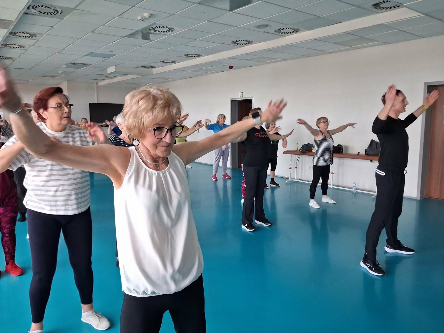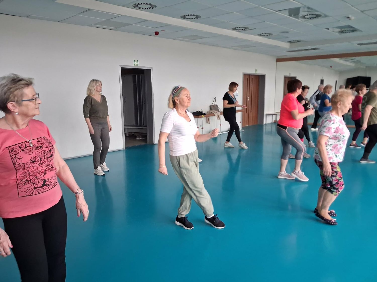 4.Gimnastyka przy muzyce „Melodia ruchu” – to ćwiczenia fizyczne połączone z muzyką, tańcem i zdrowym stylem życia seniorów – 15 godzin odbędą się w sali ćwiczeń Akademii Tarnowskiej. Zajęcia poprowadzi instruktor tańca i ruchu przy muzyce.