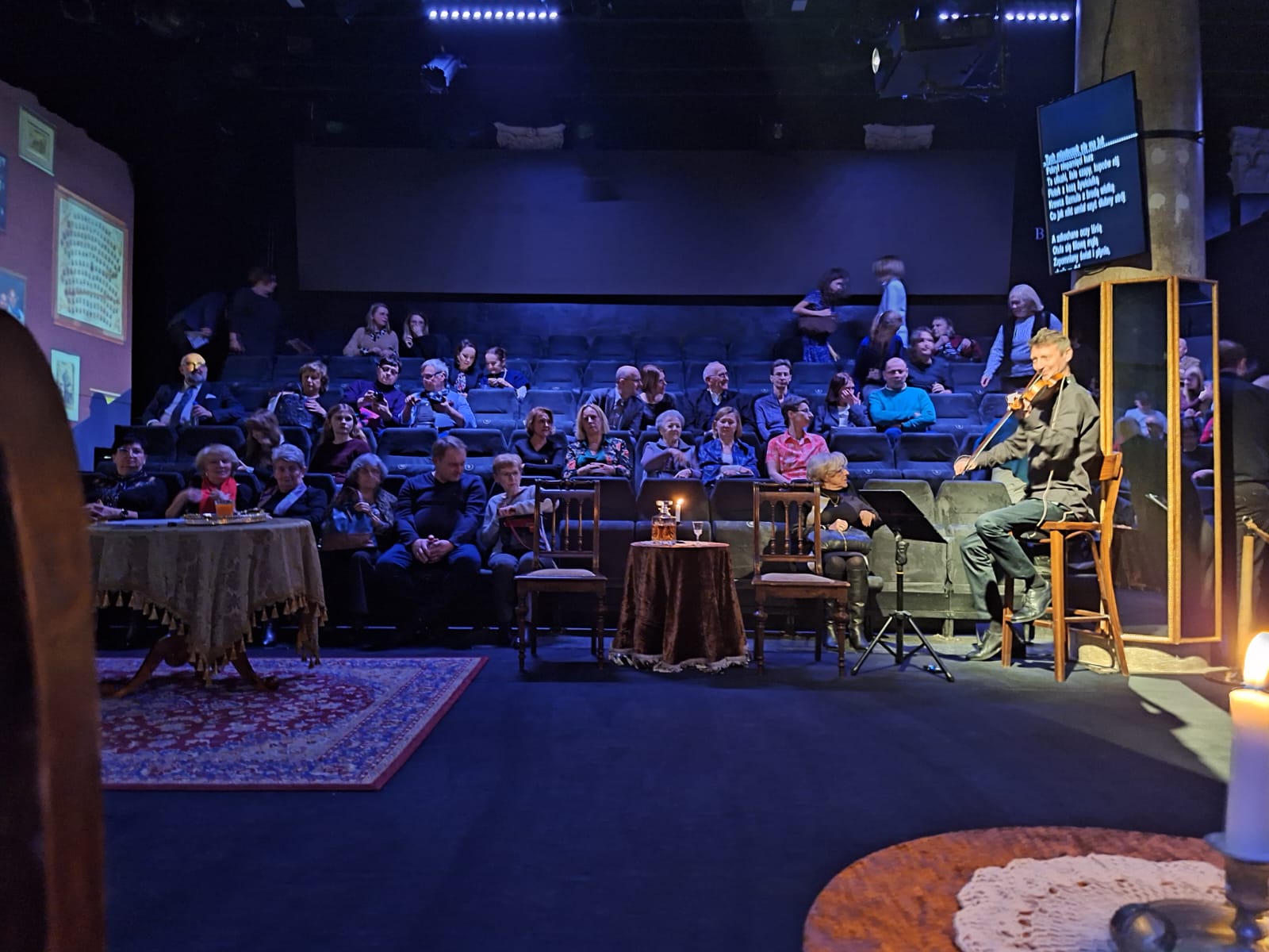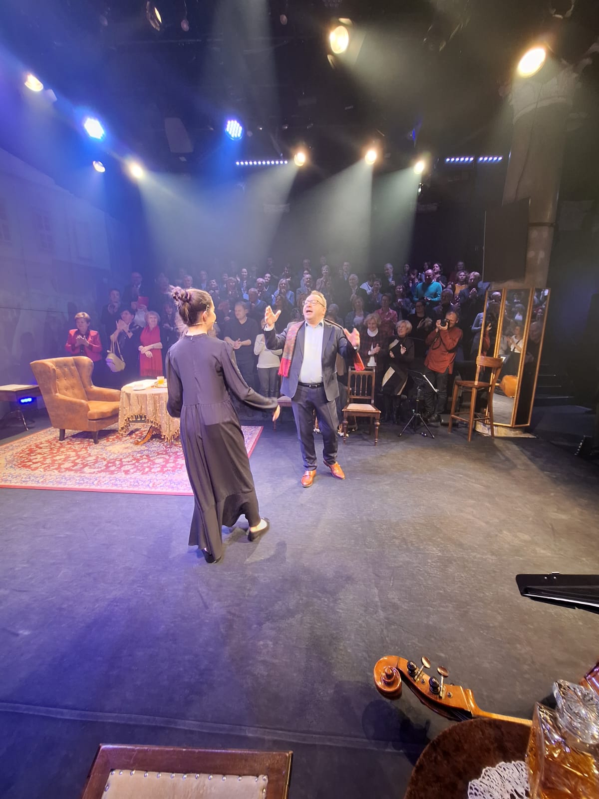 My słuchaliśmy -bo spektakl jest hołdem ,z zadumą wspomnień, ale również śpiewaliśmy z artystami takie utwory jak „Rodzynki i migdały”, „Ballada o szmuliku”, „Memento Moritz”, „Tak jak malował Pan Chagall”.