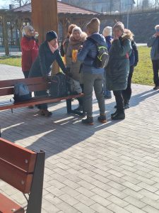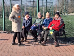 Podczas marszu było jak zawsze wesoło! Rozmowy, śmiech, dzielenie się kanapkami, gorącą herbatą z cytryną i zdrowymi owocami – nasza recepta na pełnię energii i dobry nastrój.