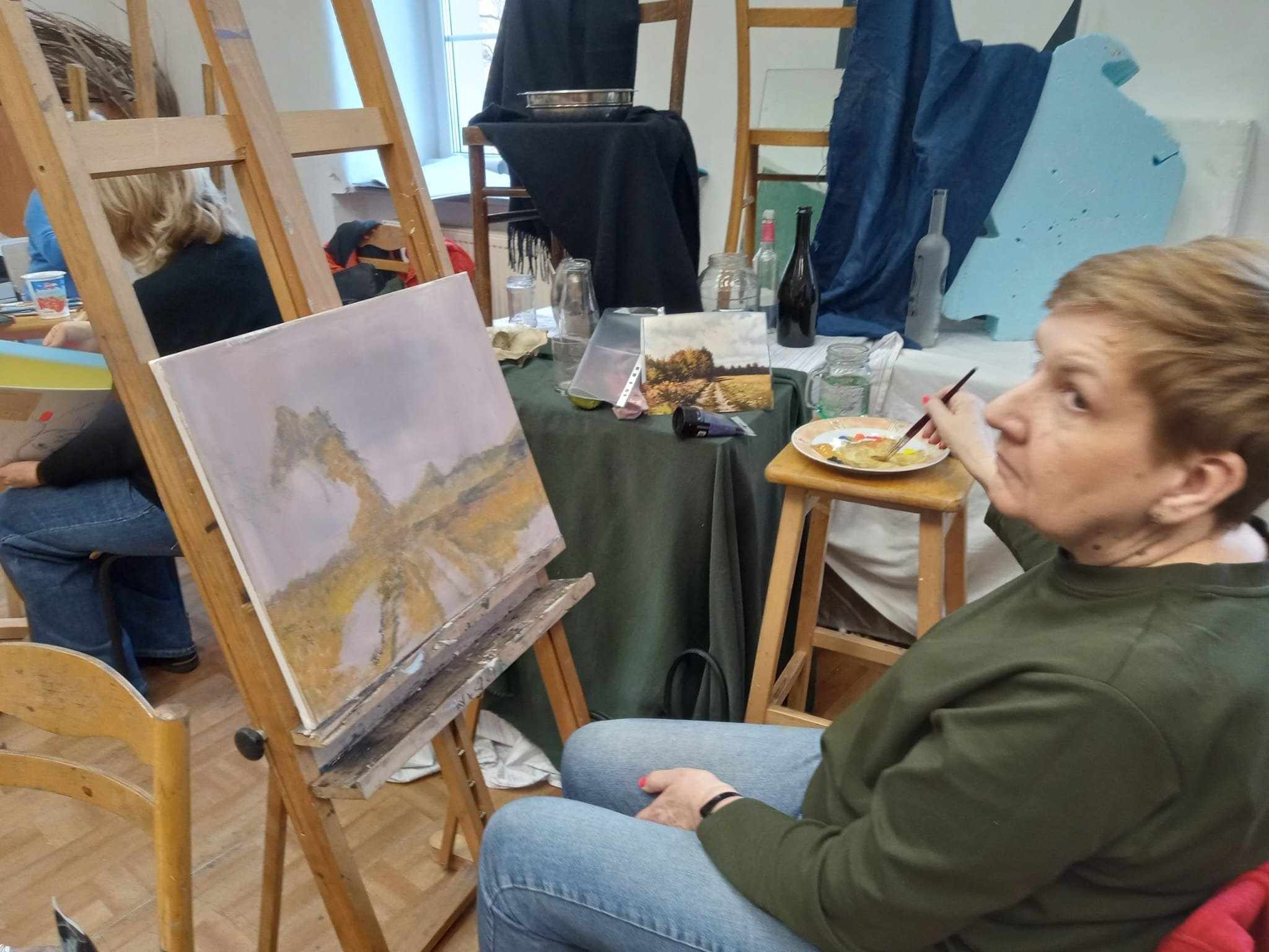 Warsztaty odbywają się w sali malarskiej Akademii Tarnowskiej pod kierunkiem artysty malarza Romana Fleszara. Uczestnicy zajęć malują obrazy, które będą wystawione na kolejnej wystawie ArtSenior w przestrzeni naszego miasta.